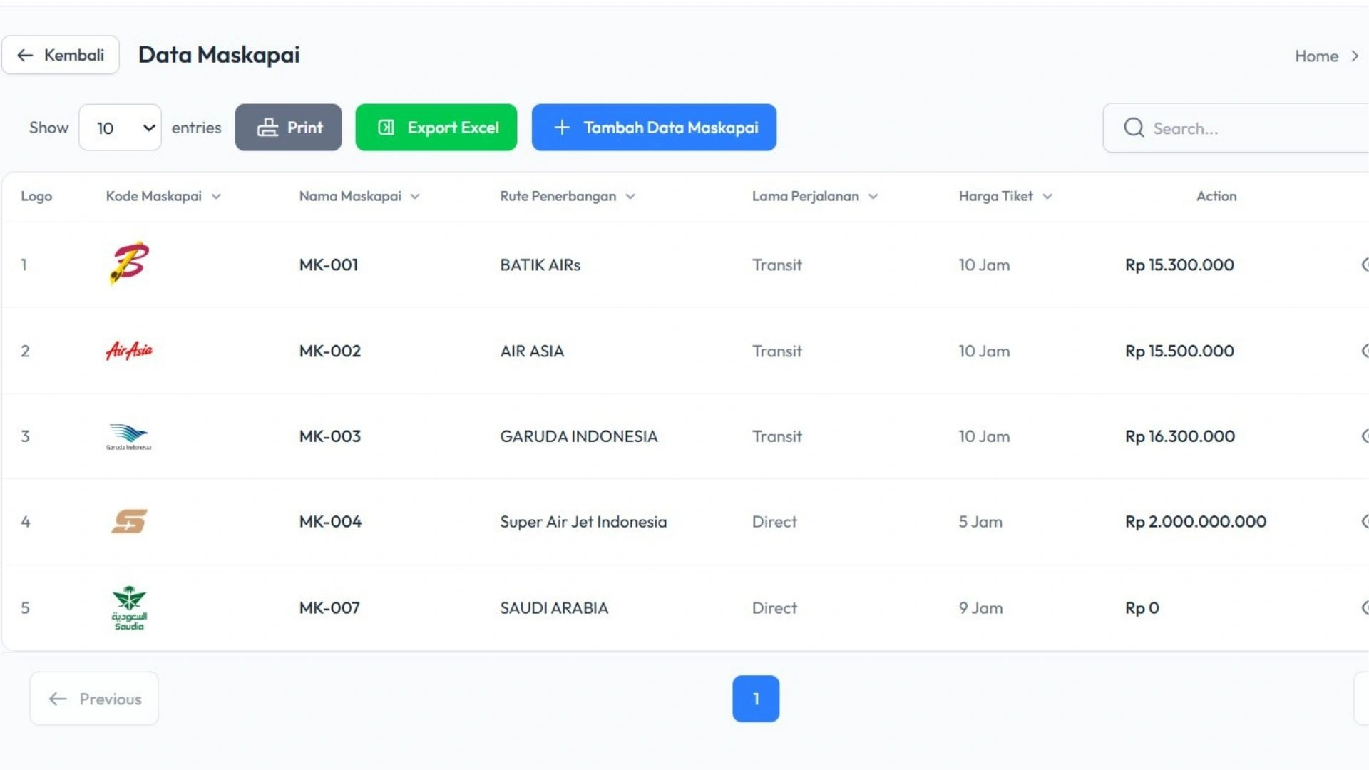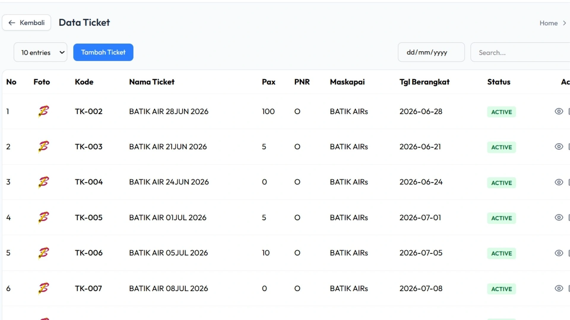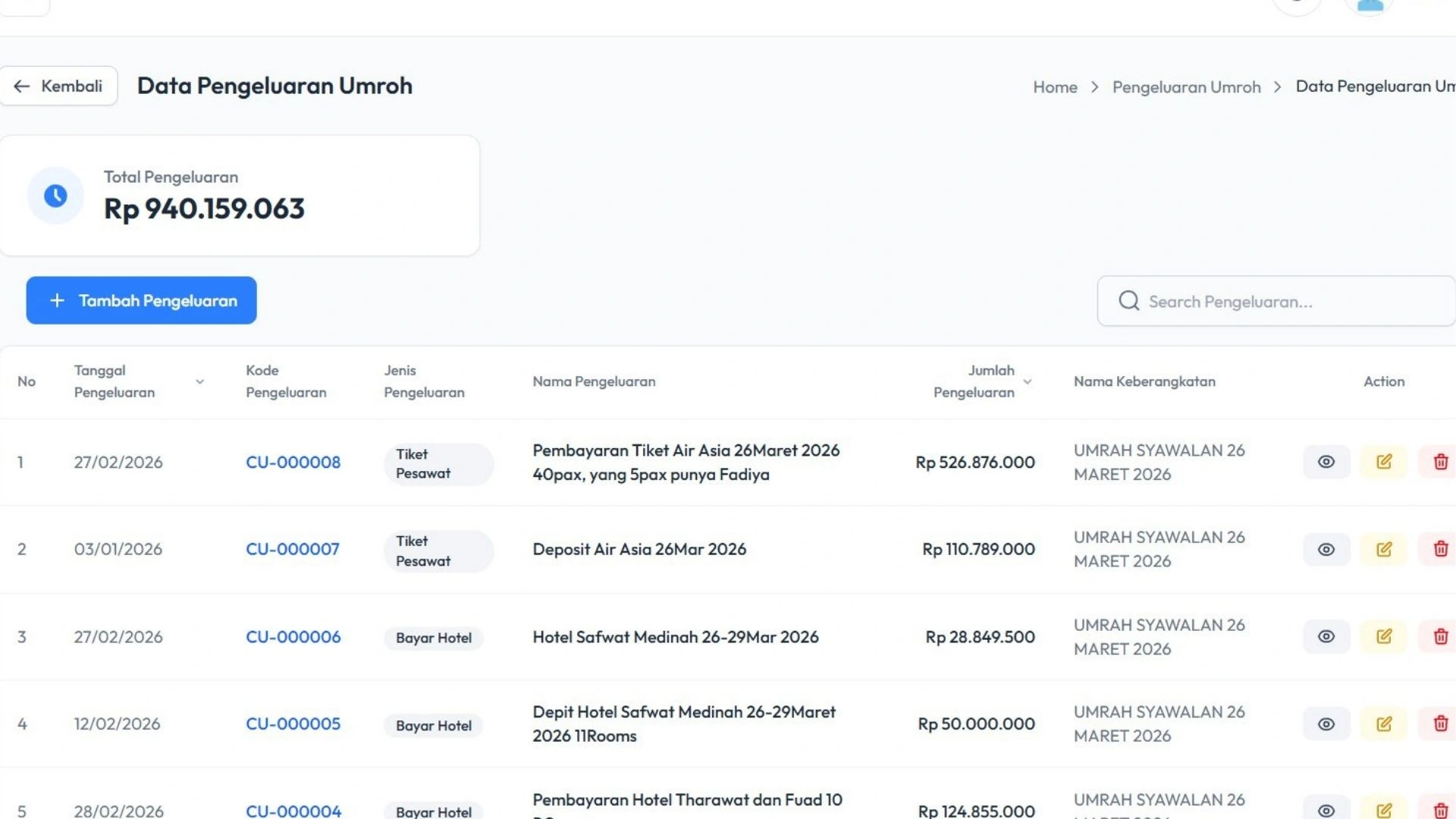 Sistem memudahkan Anda dalam mencatat dan mengelola transaksi tiket penerbangan yang digunakan dalam perjalanan jamaah.